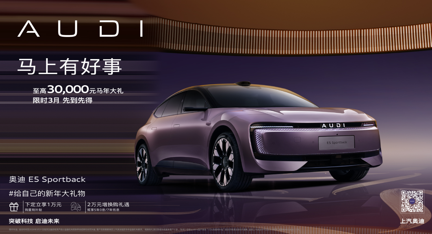 奥迪 E5 Sportback限时权益后20.59万起 上汽奥迪节后率先放福利
